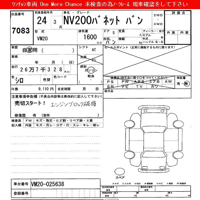 Все аукционы NISSAN NV200 VANETTE VAN