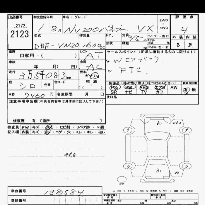 NISSAN NV200 VANETTE VAN VX - лот 2123