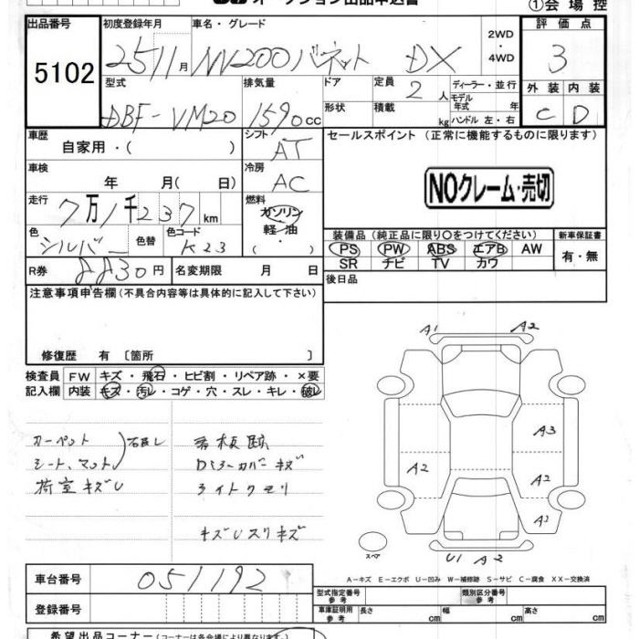 NISSAN NV200 VANETTE VAN DX - лот 5102