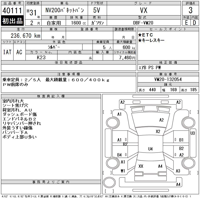 NISSAN NV200 VANETTE VAN VX - лот 40111