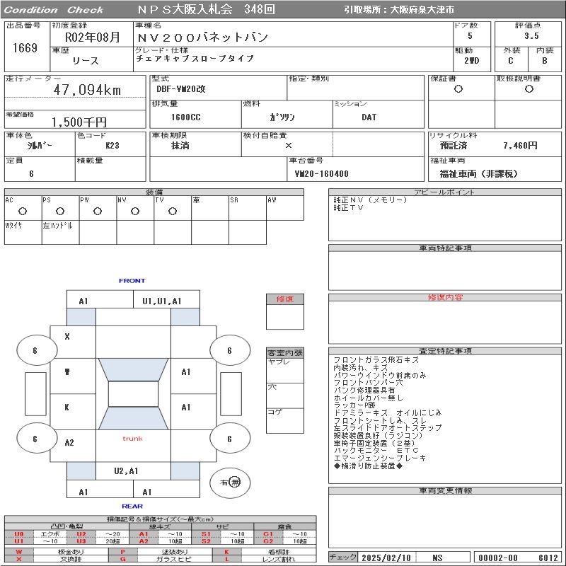 NISSAN NV200 VANETTE VAN CHAIR CAB SLOPE TYPE - лот 1669