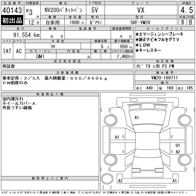 NISSAN NV200 VANETTE VAN VX - лот 40143