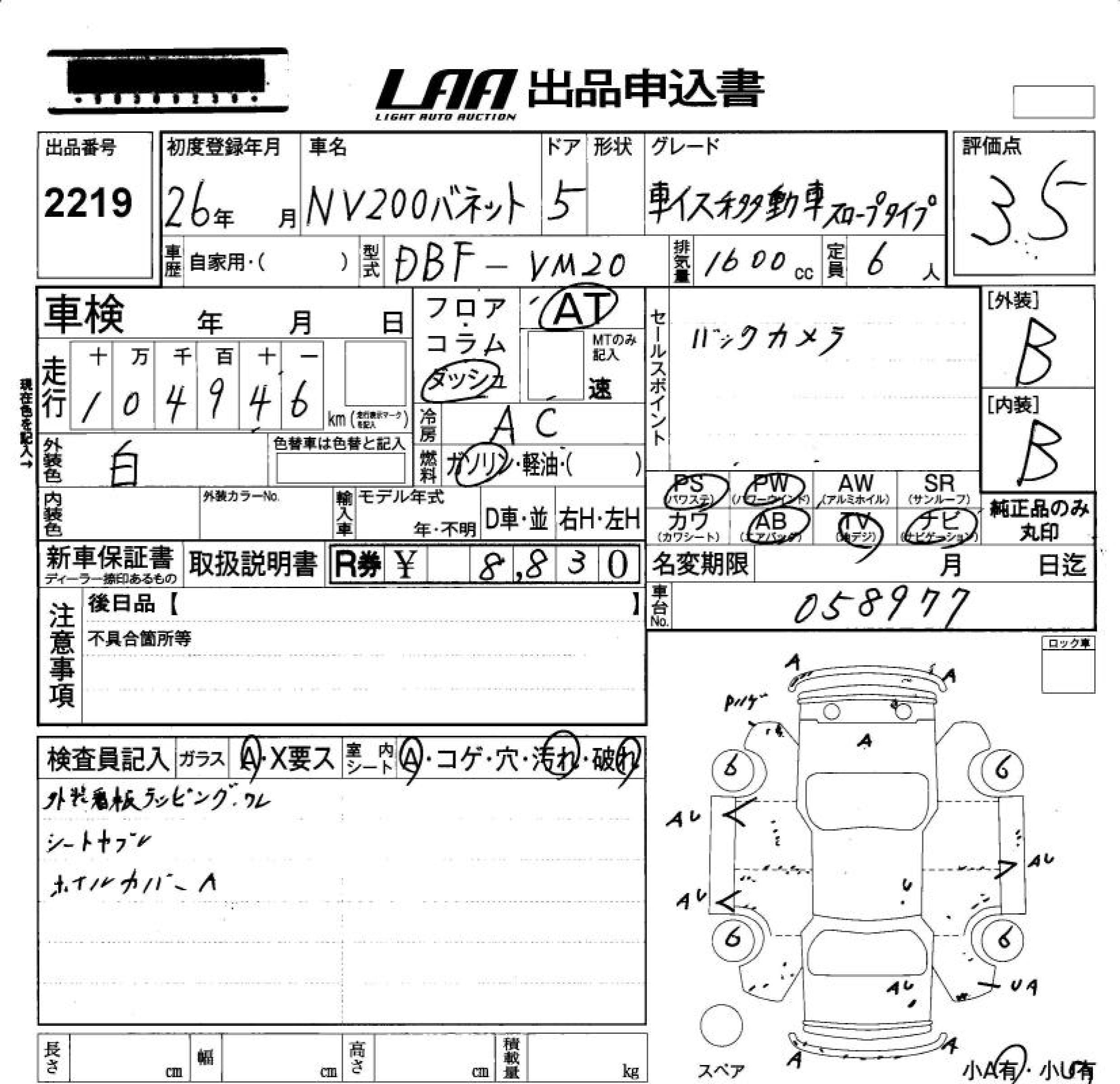 Все аукционы NISSAN NV200 VANETTE VAN
