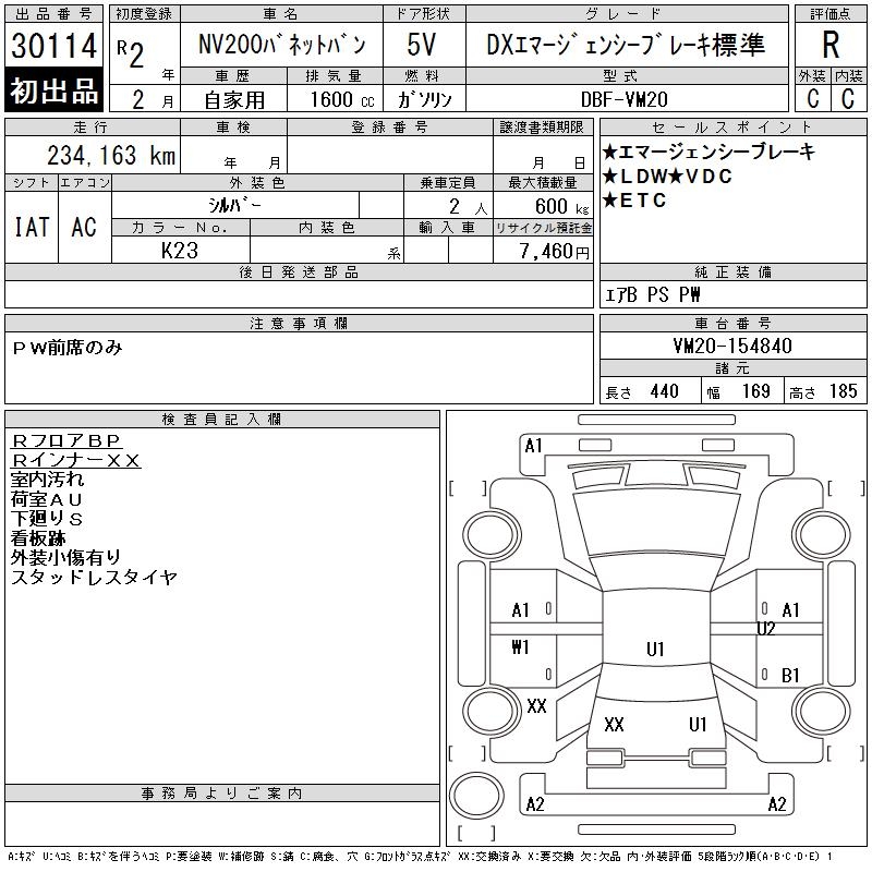 NISSAN NV200 VANETTE VAN DXEMA-JENSI- BRAKE - лот 30114