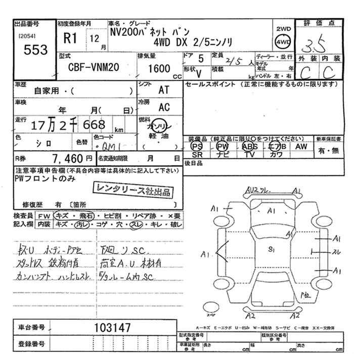 Все аукционы NISSAN NV200 VANETTE VAN