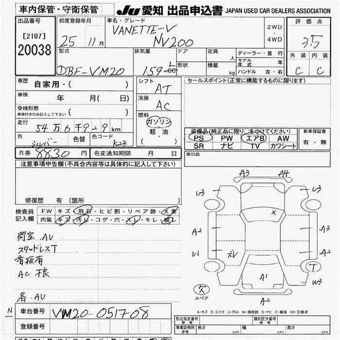 Все аукционы NISSAN NV200 VANETTE VAN