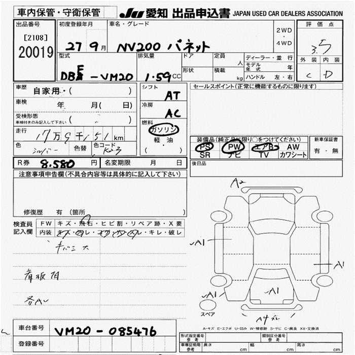 Все аукционы NISSAN NV200 VANETTE VAN
