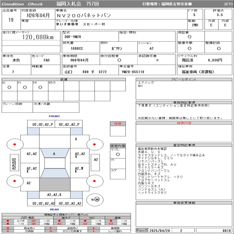 NISSAN NV200 VANETTE VAN WHEELCHAIR MOVEMENT CAR SLOPER ATTACHING - лот 19