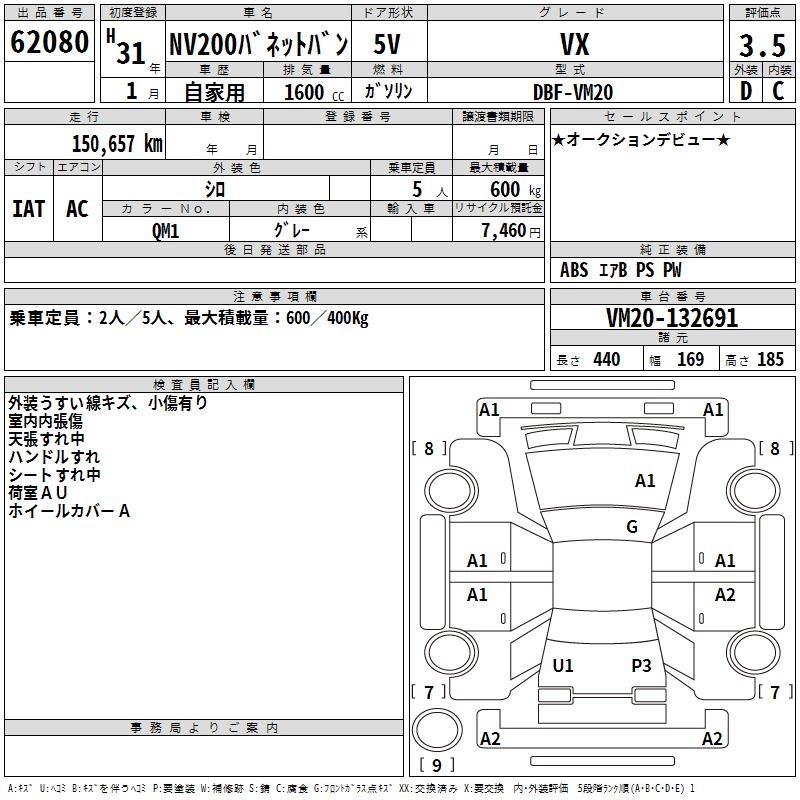 NISSAN NV200 VANETTE VAN VX - лот 62080