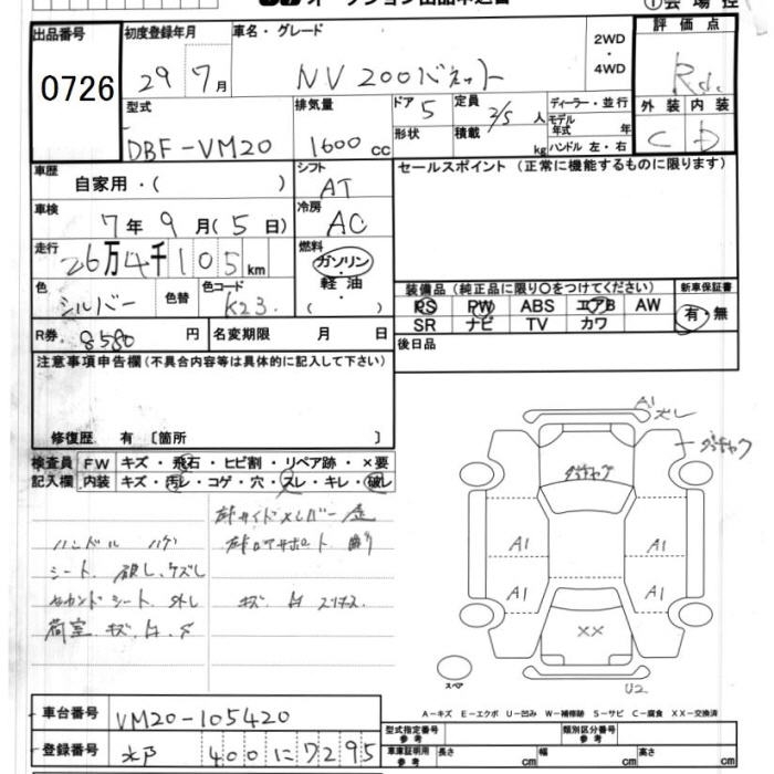 NISSAN NV200 VANETTE VAN - лот 726