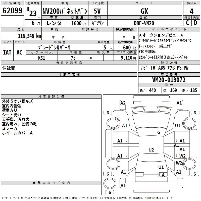 NISSAN NV200 VANETTE VAN GX - лот 62099