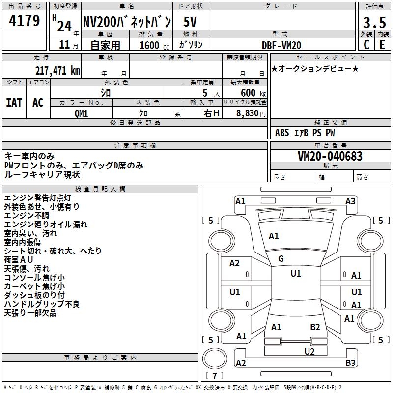 NISSAN NV200 VANETTE VAN - лот 4179