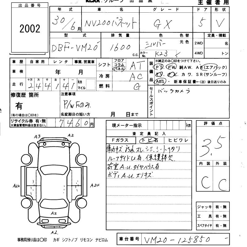 NISSAN NV200 VANETTE VAN GX - лот 2002