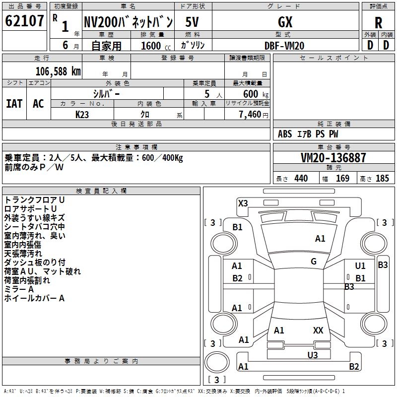 NISSAN NV200 VANETTE VAN GX - лот 62107