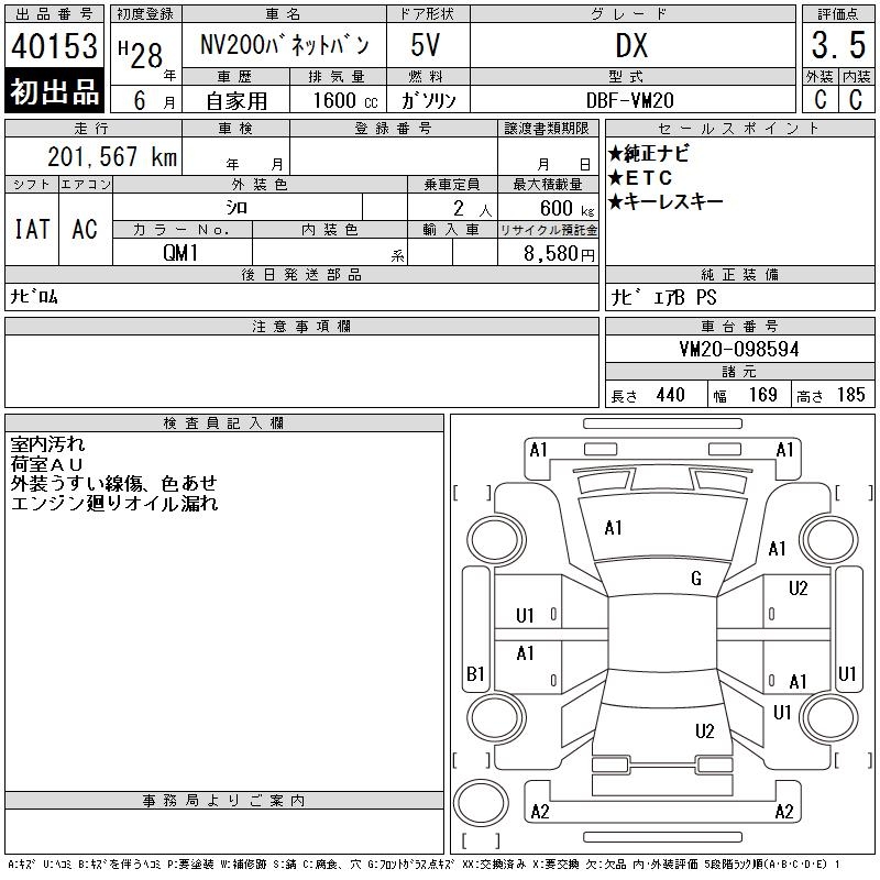 NISSAN NV200 VANETTE VAN DX - лот 40153