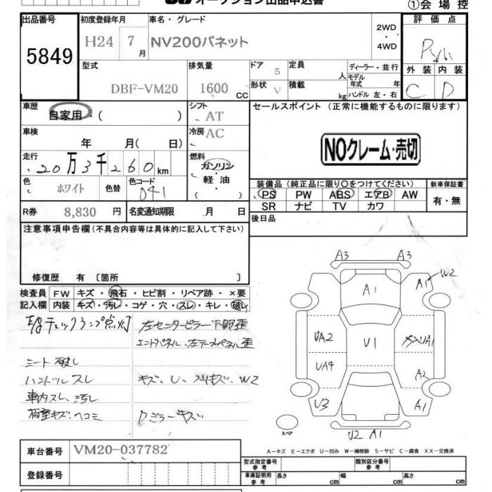 Все аукционы NISSAN NV200 VANETTE VAN