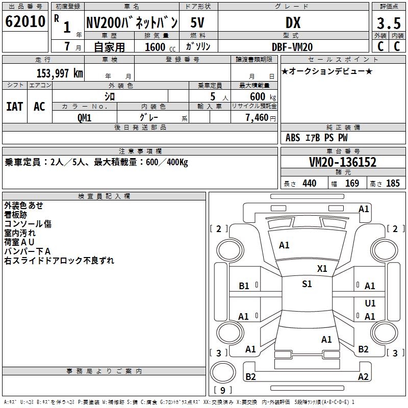 NISSAN NV200 VANETTE VAN DX - лот 62010