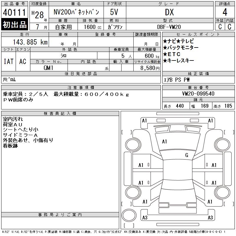 NISSAN NV200 VANETTE VAN DX - лот 40111