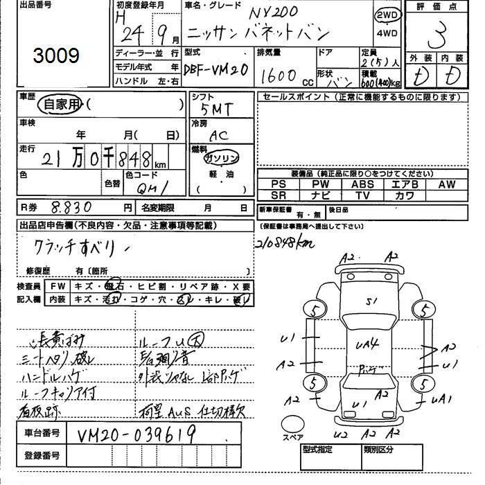 Все аукционы NISSAN NV200 VANETTE VAN