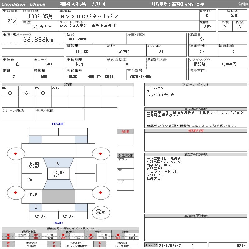 NISSAN NV200 VANETTE VAN DX(2 NUMBER OF SEATS ) OFFICE CAR SPECIFICATION - лот 212