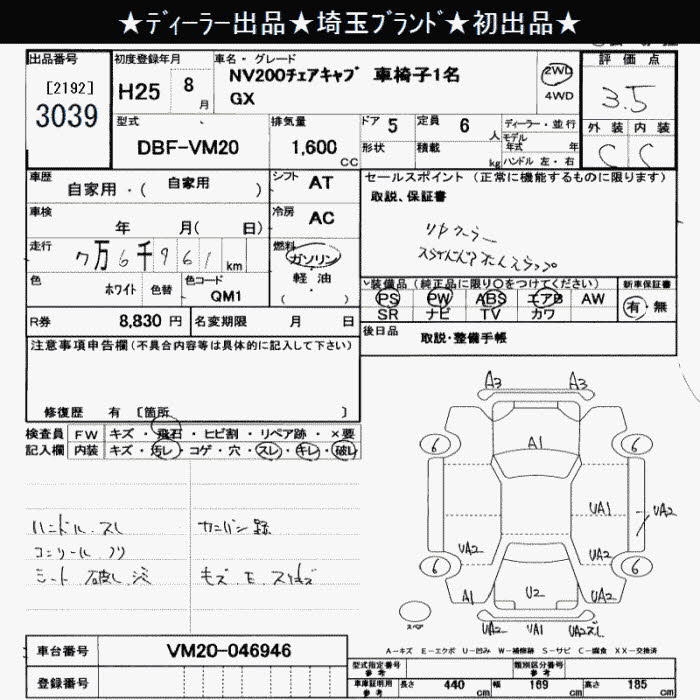 NISSAN NV200 VANETTE VAN GX 6 PERSON CHAIR CAB KRU MY S1MEI - лот 3039