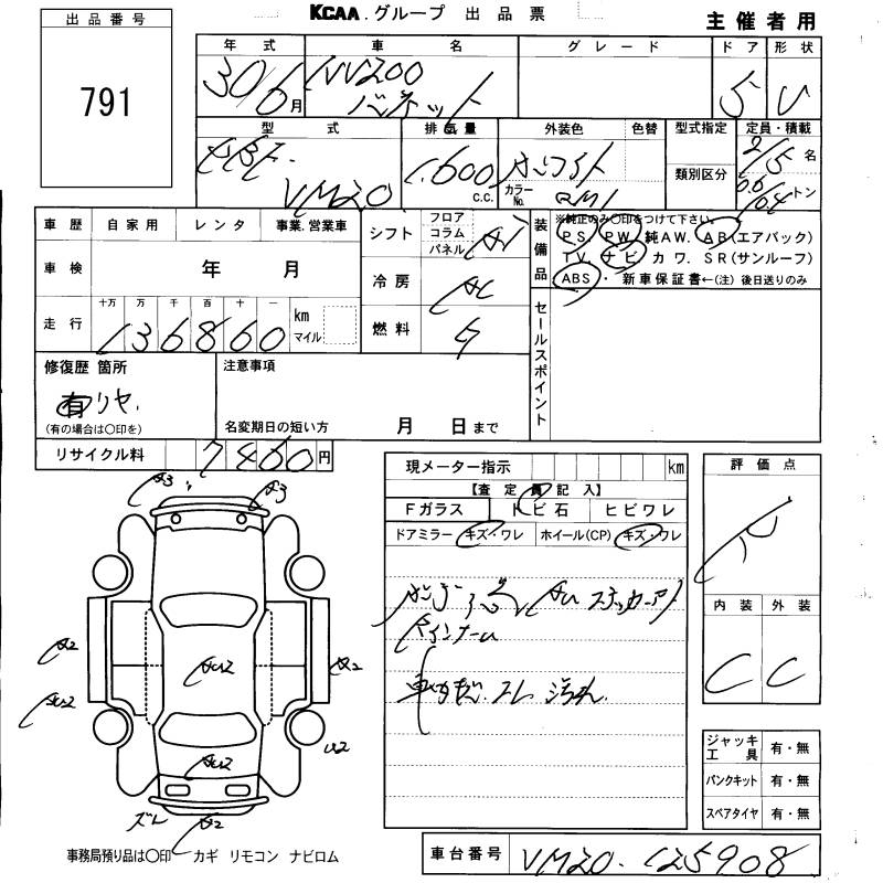 NISSAN NV200 VANETTE VAN - лот 791