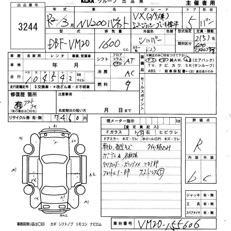 NISSAN NV200 VANETTE VAN VX(2/5 NUMBER OF SEATS )EMA-JENSI- - лот 3244