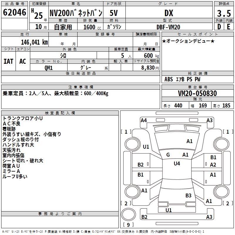 NISSAN NV200 VANETTE VAN DX - лот 62046