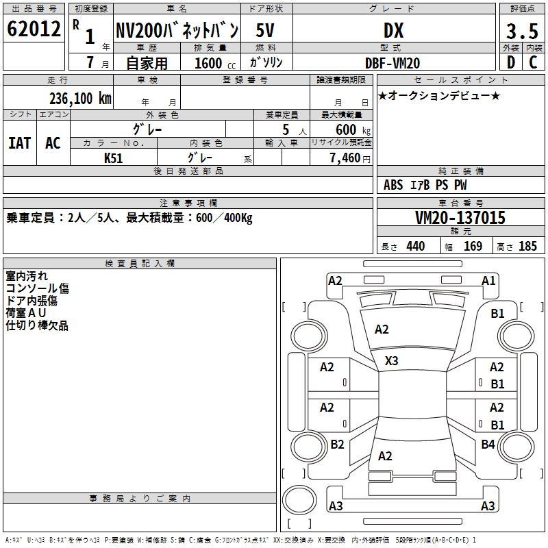 NISSAN NV200 VANETTE VAN DX - лот 62012