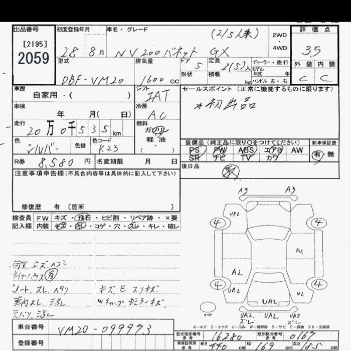 Все аукционы NISSAN NV200 VANETTE VAN