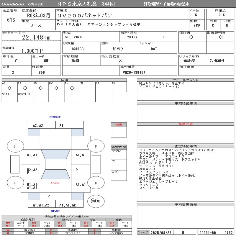 NISSAN NV200 VANETTE VAN DX(2 NUMBER OF SEATS )/EMA-JENSI- BRAKE STANDARD - лот 616