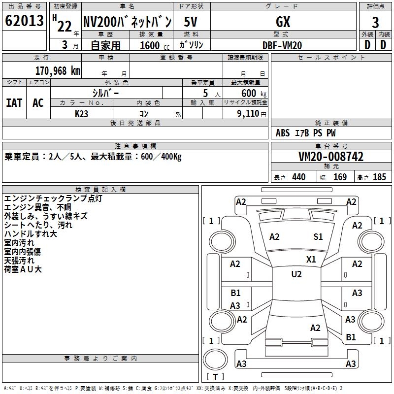 NISSAN NV200 VANETTE VAN GX - лот 62013