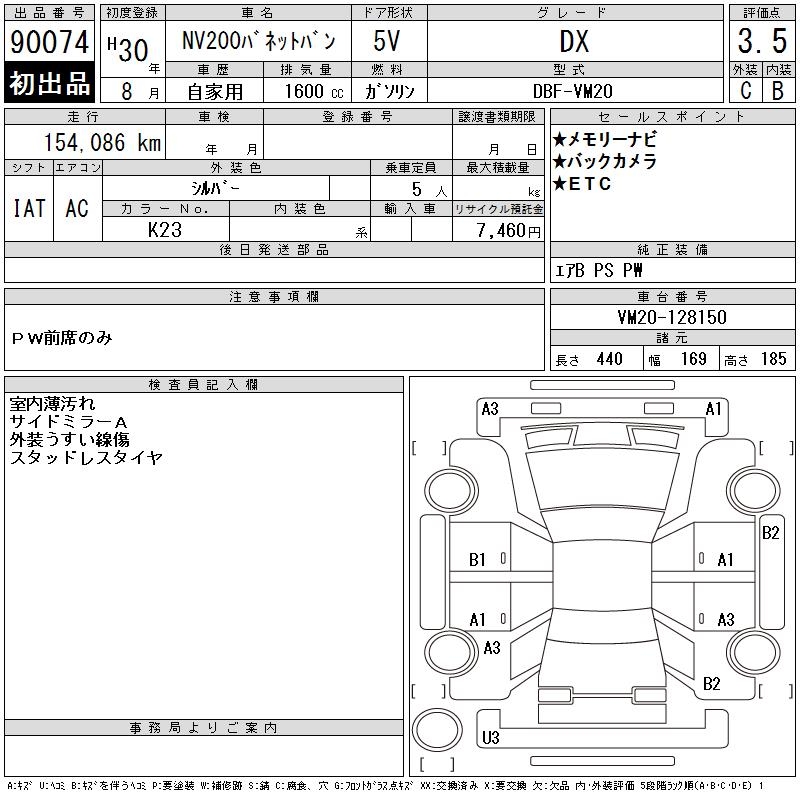 NISSAN NV200 VANETTE VAN DX - лот 90074