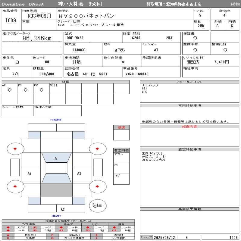 Все аукционы NISSAN NV200 VANETTE VAN