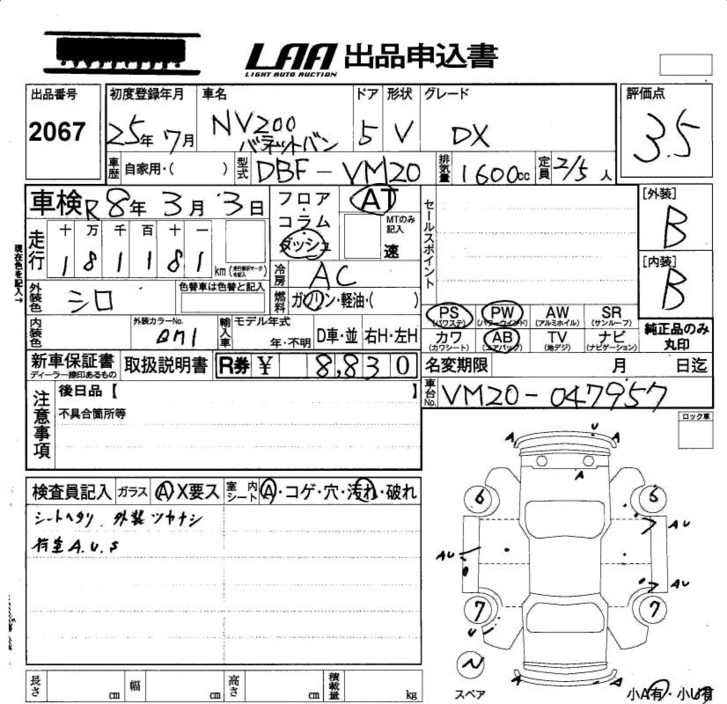 NISSAN NV200 VANETTE VAN DX - лот 2067