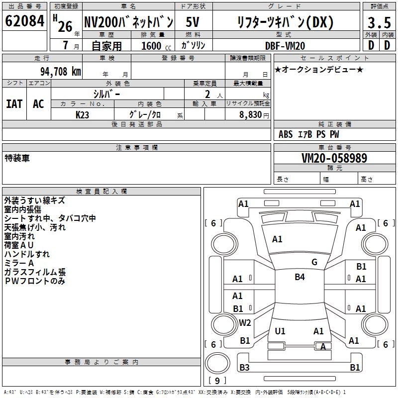 NISSAN NV200 VANETTE VAN - лот 62084