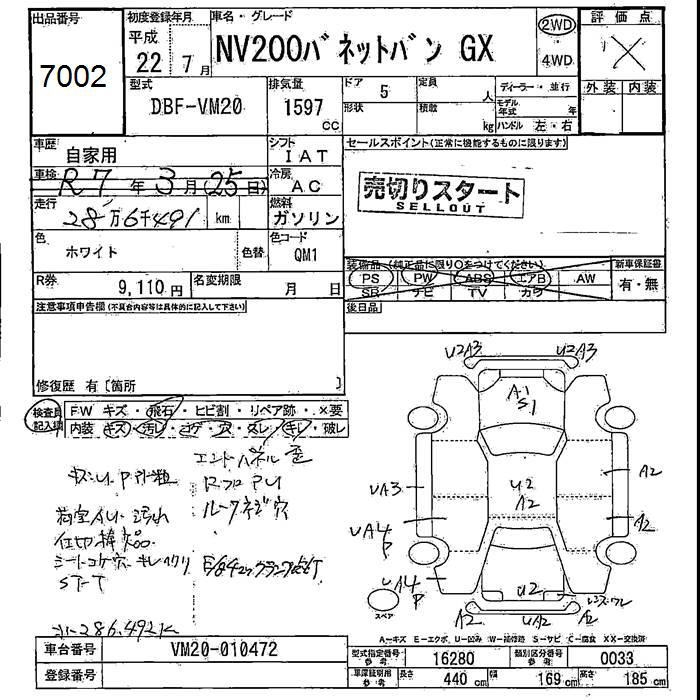 NISSAN NV200 VANETTE VAN - лот 7002