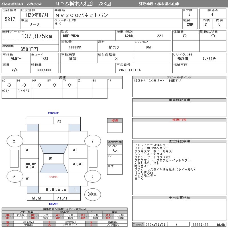 NISSAN NV200 VANETTE VAN - лот 5817
