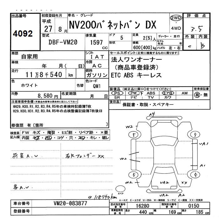 NISSAN NV200 VANETTE VAN - лот 4092