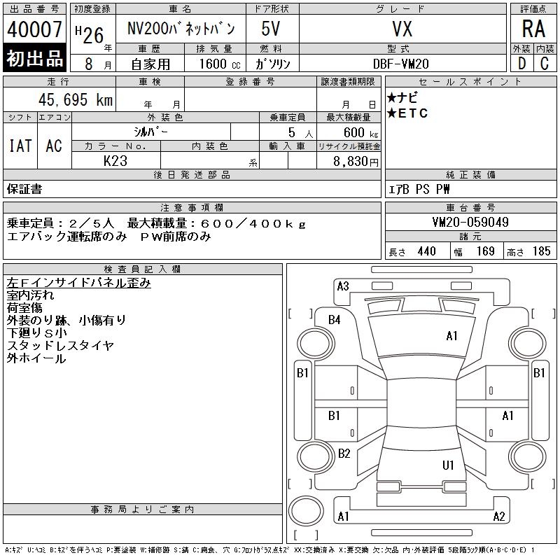 Все аукционы NISSAN NV200 VANETTE VAN