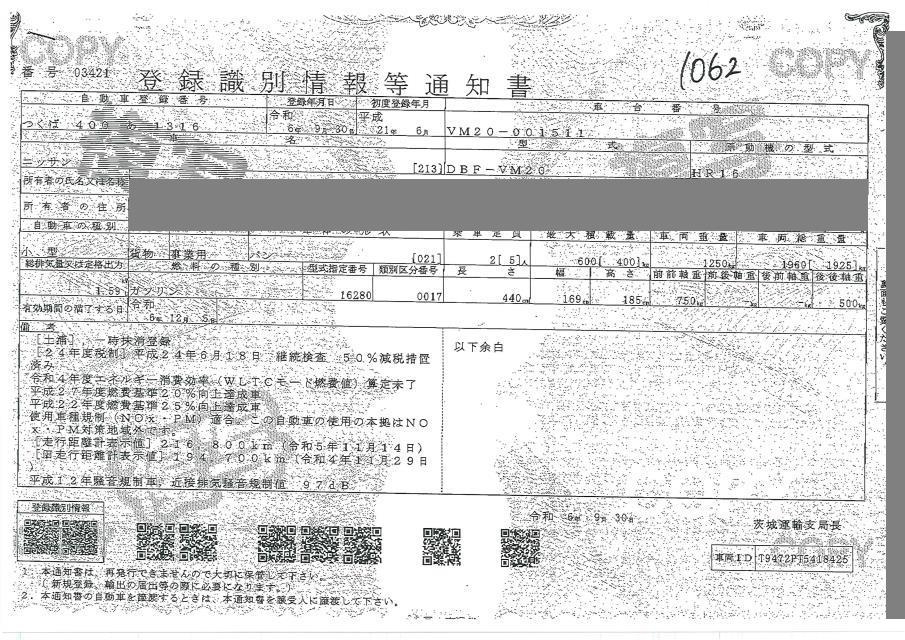 NISSAN NV200 VANETTE VAN - лот 1062