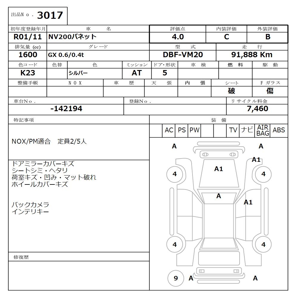 NISSAN NV200 VANETTE - лот 3017