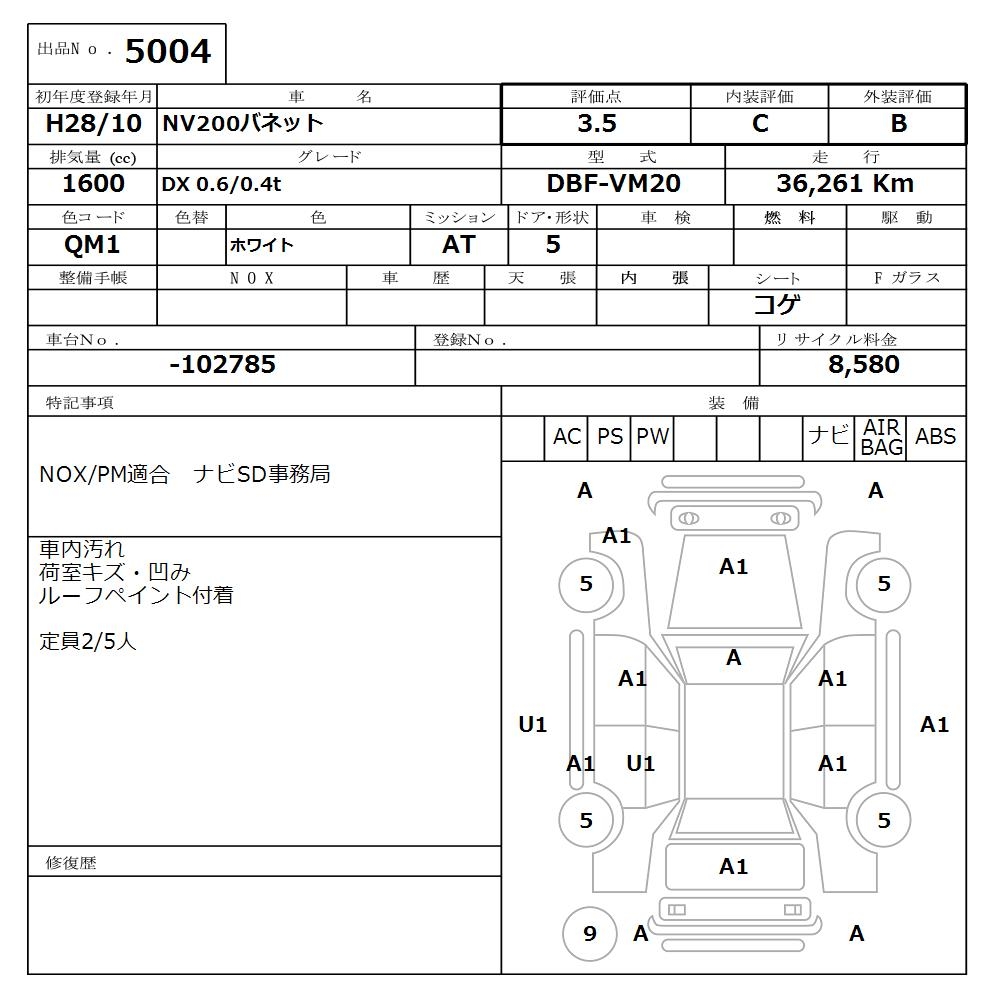NISSAN NV200 VANETTE - лот 5004