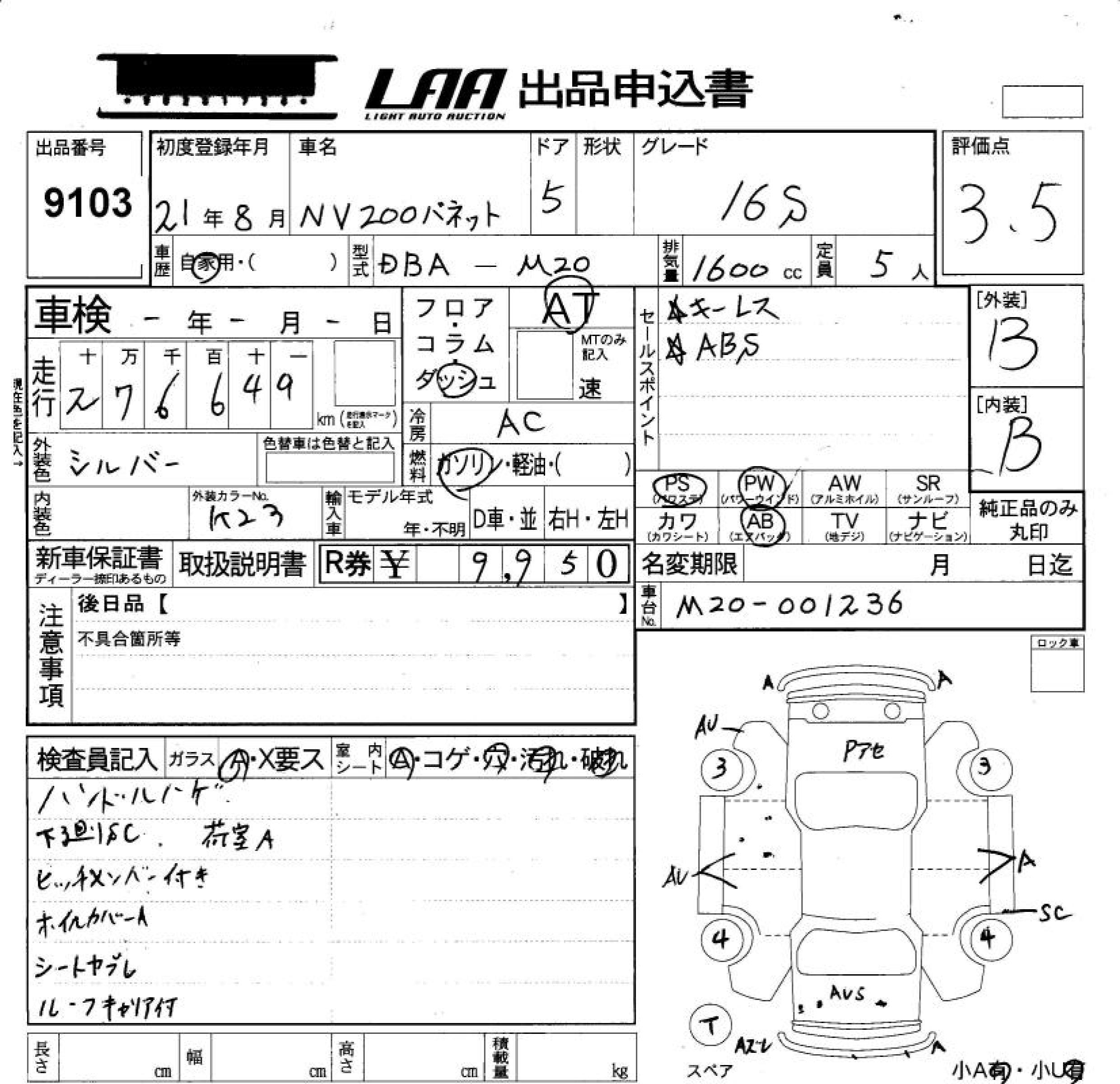 NISSAN NV200 VANETTE - лот 9103