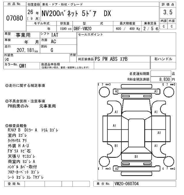NISSAN NV200 VANETTE DX - лот 7080