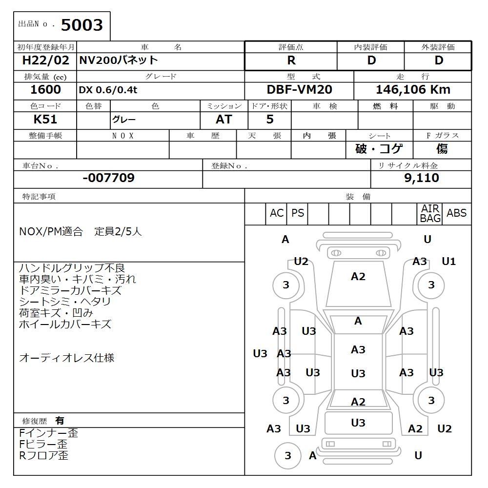 NISSAN NV200 VANETTE DX 0.6/0.4t - лот 5003