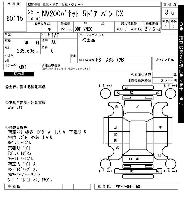 NISSAN NV200 VANETTE DX - лот 60115