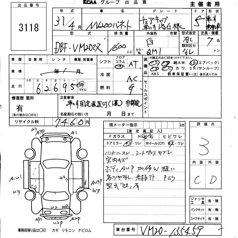 NISSAN NV200 VANETTE CHAIR CAB WHEELCHAIR 1 NAME SPECIFICATION - лот 3118