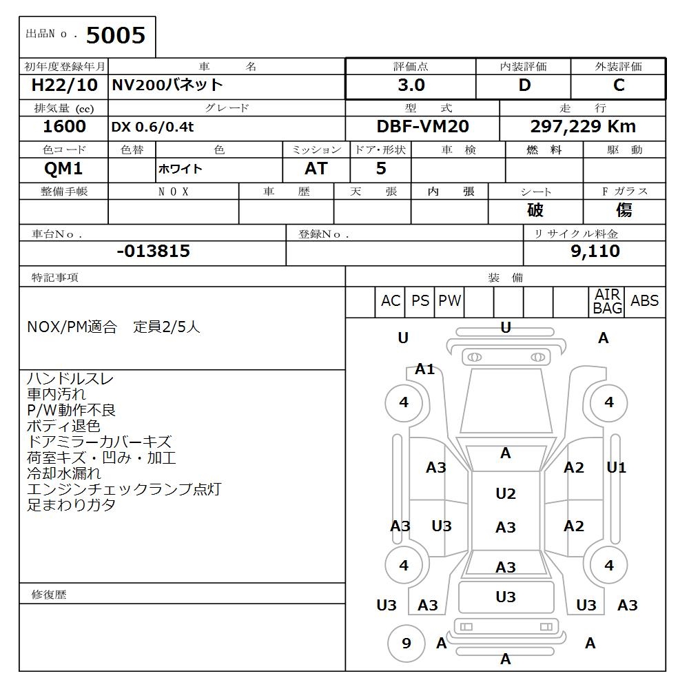 NISSAN NV200 VANETTE DX 0.6/0.4t - лот 5005
