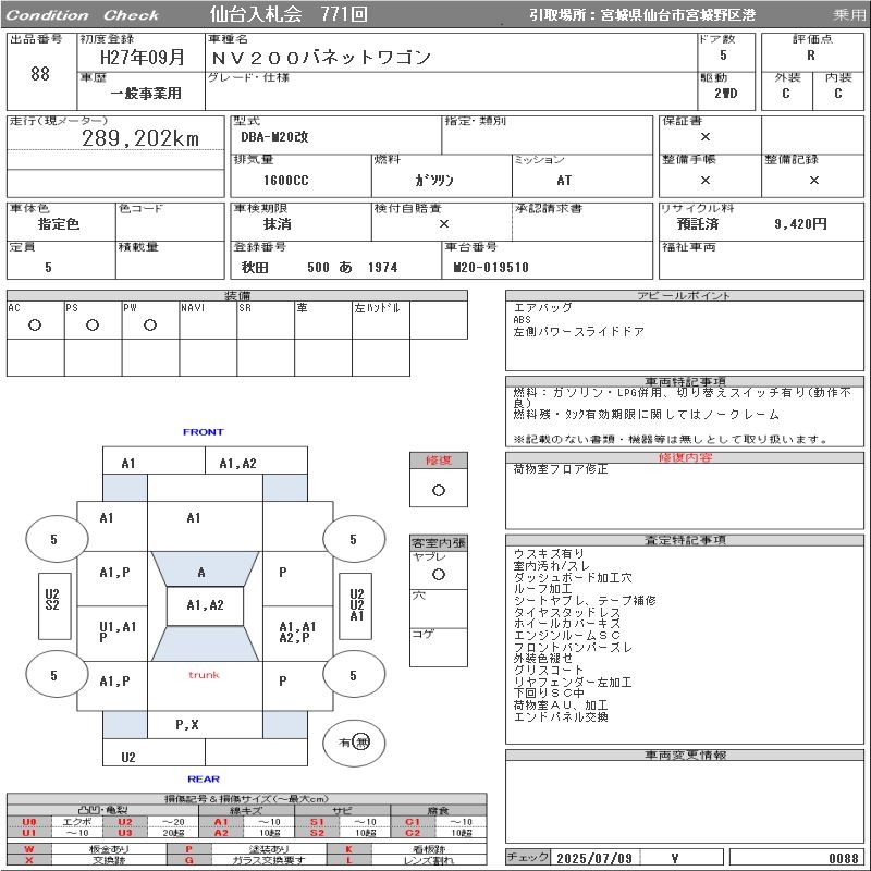Все аукционы NISSAN NV200 VANETTE